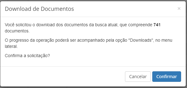 Agora basta clicar em Confirmar para que o Portal inicie a disponibilização dos documentos para Download.