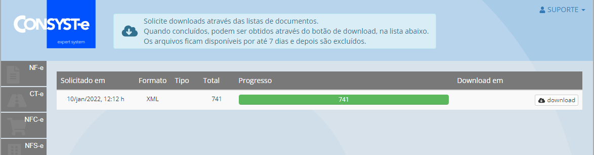 Quando o arquivo estiver pronto para ser baixado, o botão download ficará disponível:
